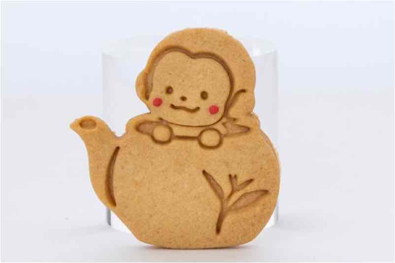 嵐山のお猿さんが急須で入浴する姿をイメージしたオリジナルデザインの愛らしいクッキー。