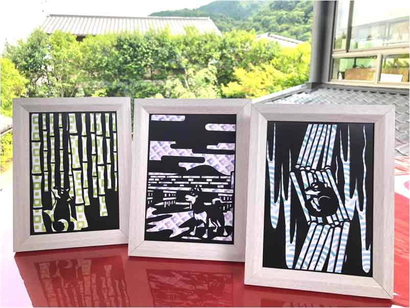 「京都の風景といぬ」をテーマに誰でも切り絵を体験できます。