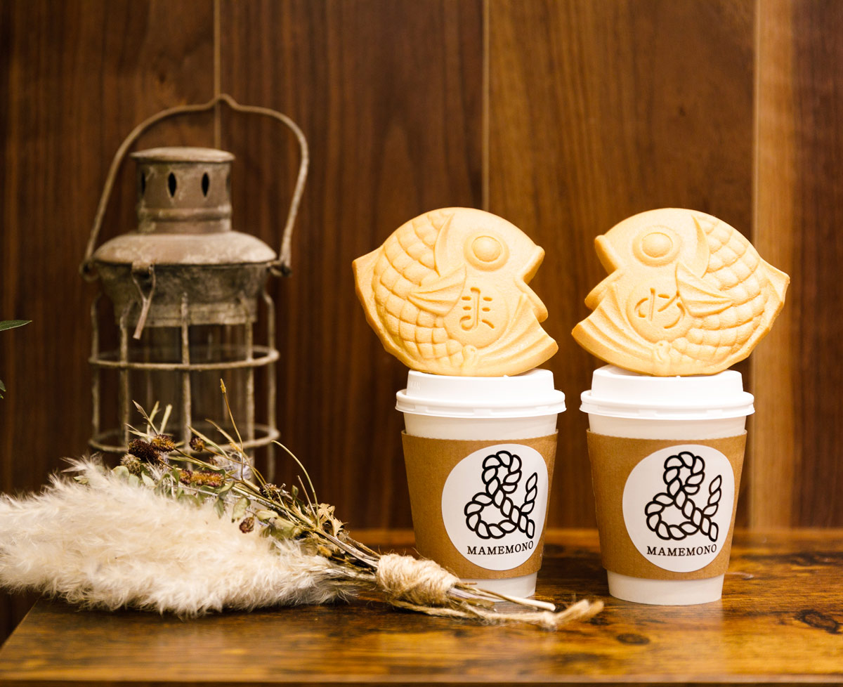 出店にあたっては、「嵐山を打ち出せるような、新しいスイーツを作ってほしい」と依頼されていました。そこで以前、たい焼きの屋台に外国人観光客の皆さんが行列していたことを思い至ったんです。150年以上焼き菓子業界で商いをしてきましたから、“焼き”の技術には自信をもっています。そこで、「生地は薄く餡をたっぷり」という従来のたい焼きではなく、生地そのものおいしさを味わっていただけるよう厚めに焼き上げ、表面はサクッと中はふわっと柔らかい食感を目指して開発を始めました。 素材は、京都のものを中心に選りすぐり、その良さを生かして餡・生地それぞれのおいしさをシンプルに感じていただけるものにしたい。そんな思いで、半年以上の開発期間を経て誕生したのが、まめものとたい焼きです。
